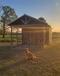 The kennel is both Sugar's home, and play space. She has an indoor and outdoor area that insure she has plenty of room to accommodate her needs. The indoor portion has a fan, is insulated, and has electricity. Sugar never has any worries in her shack, except how many more minutes there are until dinner time!